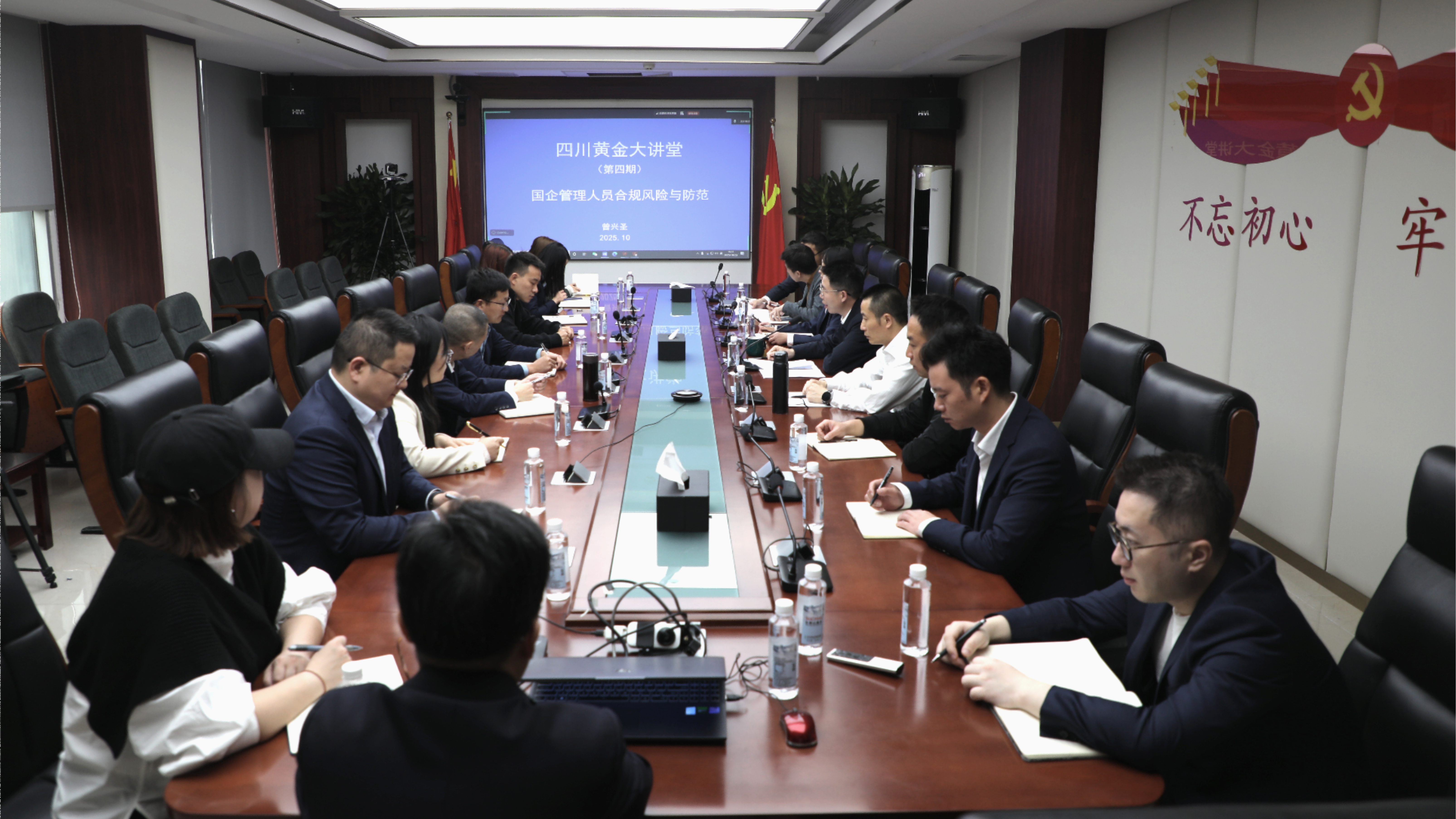 法律合規(guī)專家曾興圣作《國企管理人員合規(guī)風(fēng)險與防范》專題授課,全面講解了公司管理人員在履職過程中可能面臨的多種合規(guī)風(fēng)險,提供了防范風(fēng)險的解決路徑。培訓(xùn)要求,公司全體人員要強化職責(zé)意識,提升履職能力;強化風(fēng)險意識,提升防范能力;強化合規(guī)意識,提升管理能力。 本次大講堂采用線上線下相結(jié)合形式開展,公司在家領(lǐng)導(dǎo)班子成員、各部門負(fù)責(zé)人在主會場參學(xué),其余人員在分會場視頻參學(xué)。